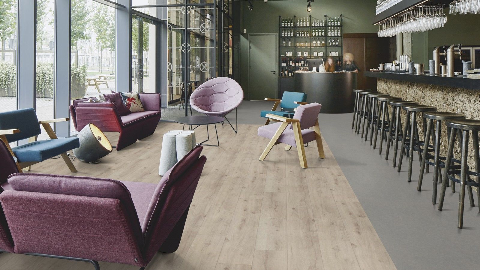 Eternal de Luxe Comfort floors are 3 mm thick and offer an acoustic value of 17 dB. The Comfort construction is specifically designed for comfort underfoot and reduced impact on the body.